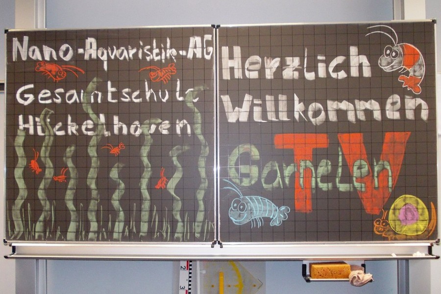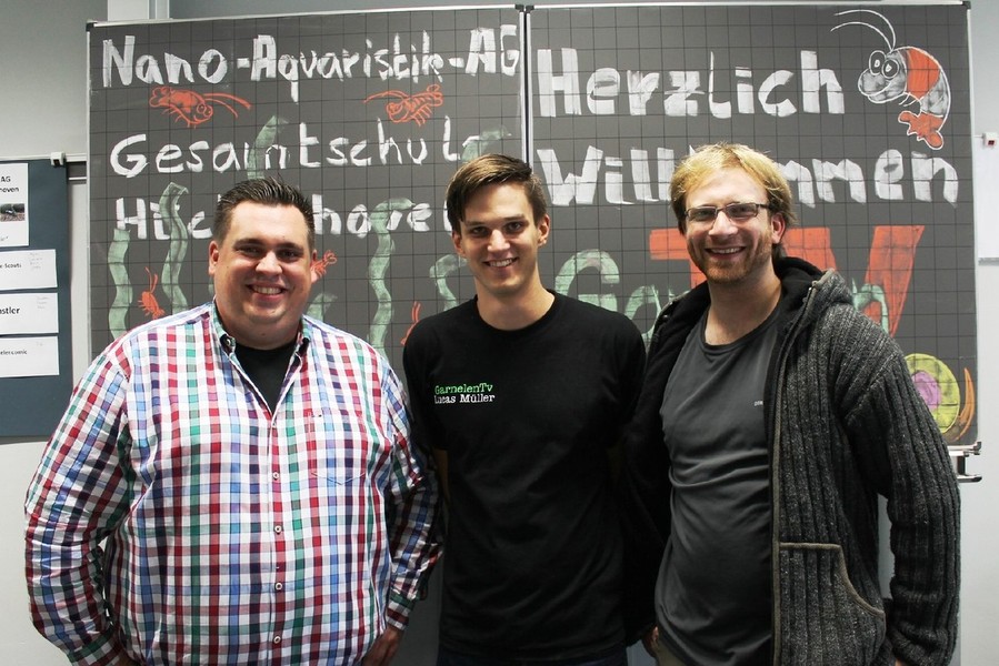 Zwei "Nordlichter" filmen einzigartige Schüler-Arbeitsgemeinschaft der Gesamtschule: Dokumentation über die Nano-Aquaristik-AG im "Garnelen-TV". Junge Züchter freuen sich über acht zusätzliche bepflanzte Aquarien.