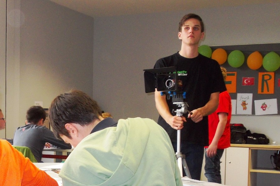 Die beiden jungen Männer, die seit 2011 zusammen als "Garnelen-TV" etwa 30 zehn bis 15 Minuten lange Beiträge produzierten, die über YouTube oder die eigene Homepage www.garnelentv.de jeweils zwischen 1000 und 30 000 Aufrufe erreichen, zeigten sich schwer beeindruckt von der Arbeit der bundesweit einzigartigen Arbeitsgemeinschaft unter der Leitung des Gesamtschullehrers Benjamin Forg.