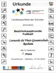 In der heutigen Bezirkshauptrunde setzte sich die Mädchenmannschaft gegen das Geschwister-Scholl-Gymnasium (4:0) und das St. Ursula Monschau (2:2) als Gruppensieger durch und fährt am 12.05. nun zum Bezirksfinale nach Bonn. Herzlichen Glückwunsch und viel Erfolg!