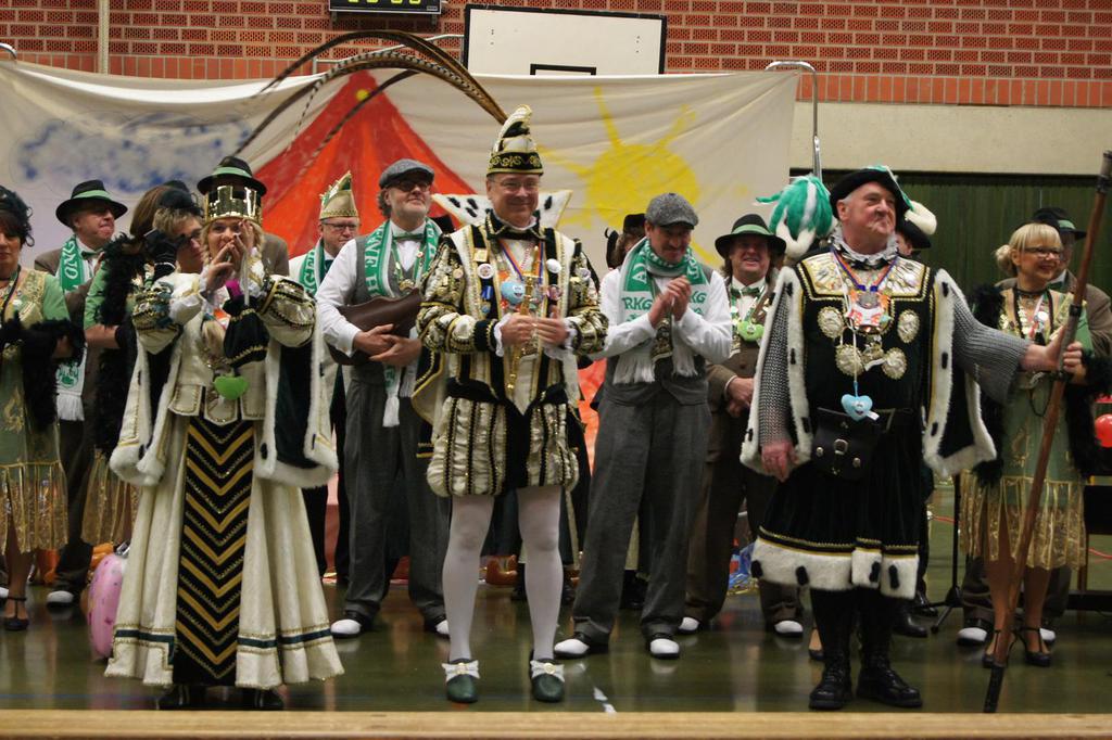 Danach ertönte über die Mikros „DJ Breuer in da House“ und Martin (Klasse 9) eröffnete die Schülerdisco. Alle durften runter von den Rängen und einfach mal tanzen, ausflippen und Karneval feiern. Aber das sollte es noch nicht gewesen sein, denn den Abschluss der Show setzte nach der Karnevalsdisco das Ratheimer Dreigestirn! Die Tollitäten Prinz Willi Mühlenberg, Jungfrau Uwe Tenzer, Bauer Hans-Armin Müller und ihr karnevalistisches Gefolge gaben der Leonardo da Vinci Gesamtschule Hückelhoven die Ehre. Sie zeigten dem Publikum eindrucksvoll wie man in Ratheim Karneval feiert, führten einen Tanz auf, sangen Lieder, verliehen Orden und schmissen reichlich Kamelle. Zudem führten zwei fabelhafte und selbstbewusste junge Funkenmariechen eine sehr tolle Tanzeinlage für die Schülerinnen und Schüler auf. „Das war nicht nur ein sensationeller Besuch für unsere Gesamtschule, sondern auch Werbung für den Karneval und das Brauchtum in Ratheim“, stellte Lehrerin Kristina Jansen voller Freude fest, welche auch den Kontakt zum Dreigestirn für die Schule organisierte.