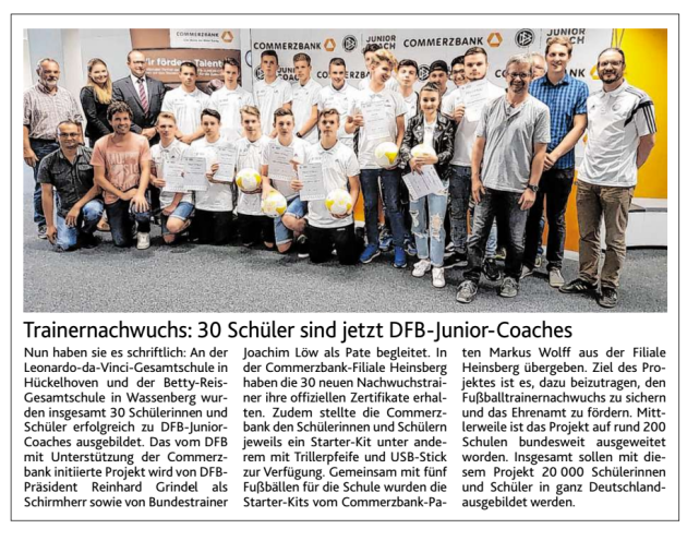 Zeitungsbericht zur DFB-Zertifikatsübergabe am 29.06.2017