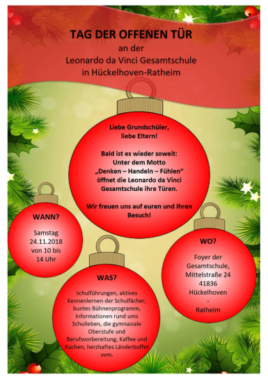 Die Leonardo da Vinci Gesamtschule Hückelhoven öffnet in der Vorweihnachtszeit ihre Türen für interessierte Kinder und ihre Eltern.