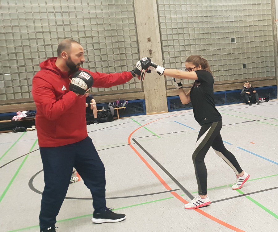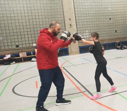 Dass die Arbeitsgemeinschaft letztlich zu Beginn des Schuljahres 2017/18 eingeführt wurde, ist der Offenheit der Schulleitung und der Kooperationsbereitschaft des Heimatvereins BC Hückelhoven zu verdanken. Dirk Bürger (Vorsitzender des Vereins) erklärte sich dazu bereit, die Schülerinnen und Schüler in das Kindertraining zu integrieren. „Es war schon immer der Wunsch meines Vaters (Hubert Bürger) das Boxen als Schulsport in die Schulen zu bringen. Das ist ein erster wichtiger Schritt dorthin“. Einmal in der Woche trainieren die Schülerinnen und Schüler die wichtigsten Boxtechniken und erhöhen dadurch ihre körperliche Leistungsfähigkeit. Doch laut A. Calik ist das noch längst nicht alles. Das Boxen darf auf keinen Fall mit einer gewaltfördernden und unkontrollierten Beschäftigung verwechselt werden. Beim Boxen geht es um Disziplin und noch viel wichtiger, um die persönlichkeitsentwickelnden Elemente. „Mich selber hat das Boxen durch die wichtigsten Phasen meines Lebens begleitet. Die Strukturen, die mir der Sport vermittelte, halfen mir in meinem Studium und auch in meinem Privat- und Berufsleben.“ Seit 4 Jahren befähigt nun die Trainer Lizenz C den 36jährigen Lehrer dazu, den Sport weitervermitteln zu dürfen.