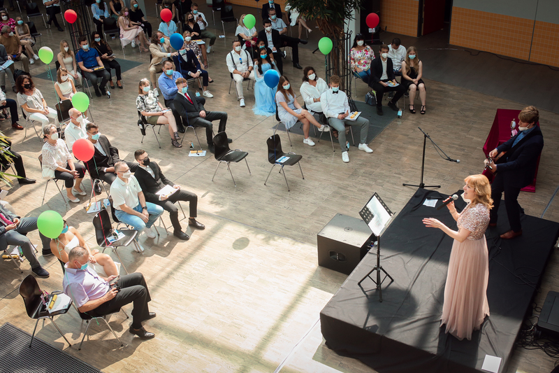 Die erste stellvertretenden Bürgermeisterin Andrea Axer richtete anschließend die Grüße der Stadt Hückelhoven an die Abiturientinnen und Abiturienten aus. Sie nahm die Gelegenheit zum Anlass, Schülern, Eltern und auch den Lehrerinnen und Lehrern für ihren besonderen Einsatz in der Coronazeit zu danken, der sehr viel zusätzliches Engagement erfordert hatte. Die Elternpflegschaftsvorsitzende Frau Antja Schwietzke ließ die Zeit Revue passieren und wünschte sich, dass der tolle Umgang untereinander auch über die Zeit hinaus bestehen bleibt.