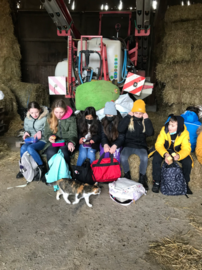 Die Schülerinnen und Schüler erfuhren viel über Hühnerhaltung, sowie den Anbau von Kartoffeln, Zuckerrüben, Mais und Winterweizen, der zur Mast der Hähnchen eingesetzt wird. Sie konnten auch einmal kleinere Aufgaben eines Landwirtes erledigen. Herr Moll führte seine Traktoren vor, zeigte die Pflanzenschutzspritze, den Düngestreuer, die Anhänger, die Kartoffelsortier- und Absackmaschine. Anschließend wurde dann zur Belohnung auf den Strohballen in der Scheune gefrühstückt und auch die fünf Pferde, die Sabrina Moll und ihre jüngste Tochter als Hobby halten, wurden beobachtet und ausgiebig gestreichelt.