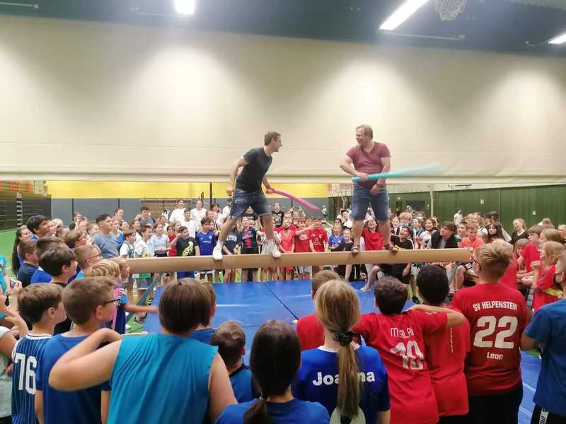 Das beliebteste Spiel jedoch war American Gladiators, wo die Klassen auf einem Schwebebalken mit Poolnudeln gegeneinander antraten und sich hinunter zu werfen versuchten. Dabei war das Highlight der Kampf der Klassenlehrer.