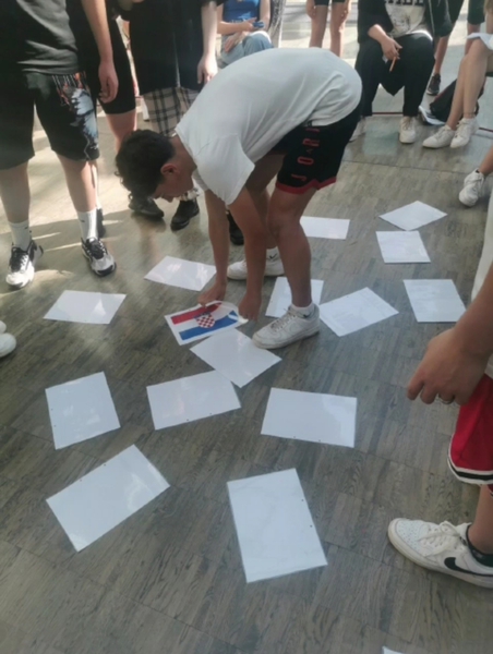 Die Schülerinnen und Schüler konnten sich in Form von einem Ländermemory, einem Leonardo da Vinci Quiz, "Ich packe meinen Koffer...", dem Dreibeinlauf, Sackhüpfen, kooperativem Skilanglauf, Füll den Eimer (ein lustiges Spiel mit Wasser), einem Basketballwurfbattle, dem Huckepackslalom und dem Spinnennetz (ein erlebnispädagogisches Spiel) austoben und sich mit anderen Klassen messen.